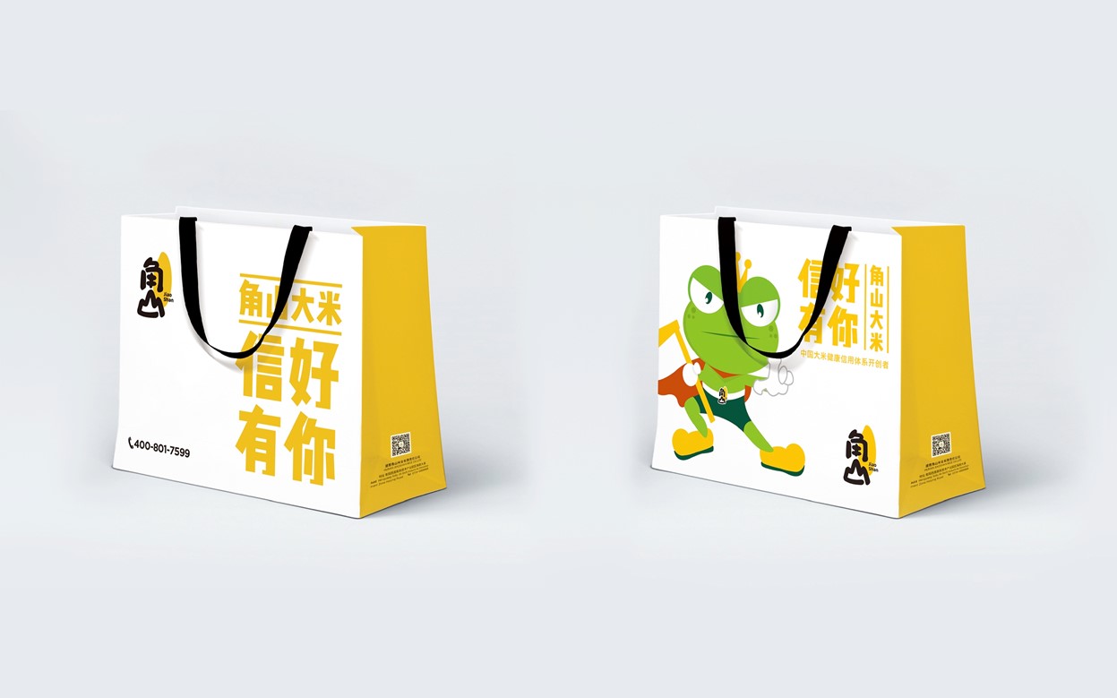 角山大米的視覺(jué)方面采用黃色,品牌調(diào)性摒棄傳統(tǒng)大米品牌的風(fēng)格,針對(duì)更加的年輕和簡(jiǎn)約,符合當(dāng)代新消費(fèi)的審美,打造全新品牌視覺(jué)體系,傳遞可信賴(lài)的大米品牌新形象。