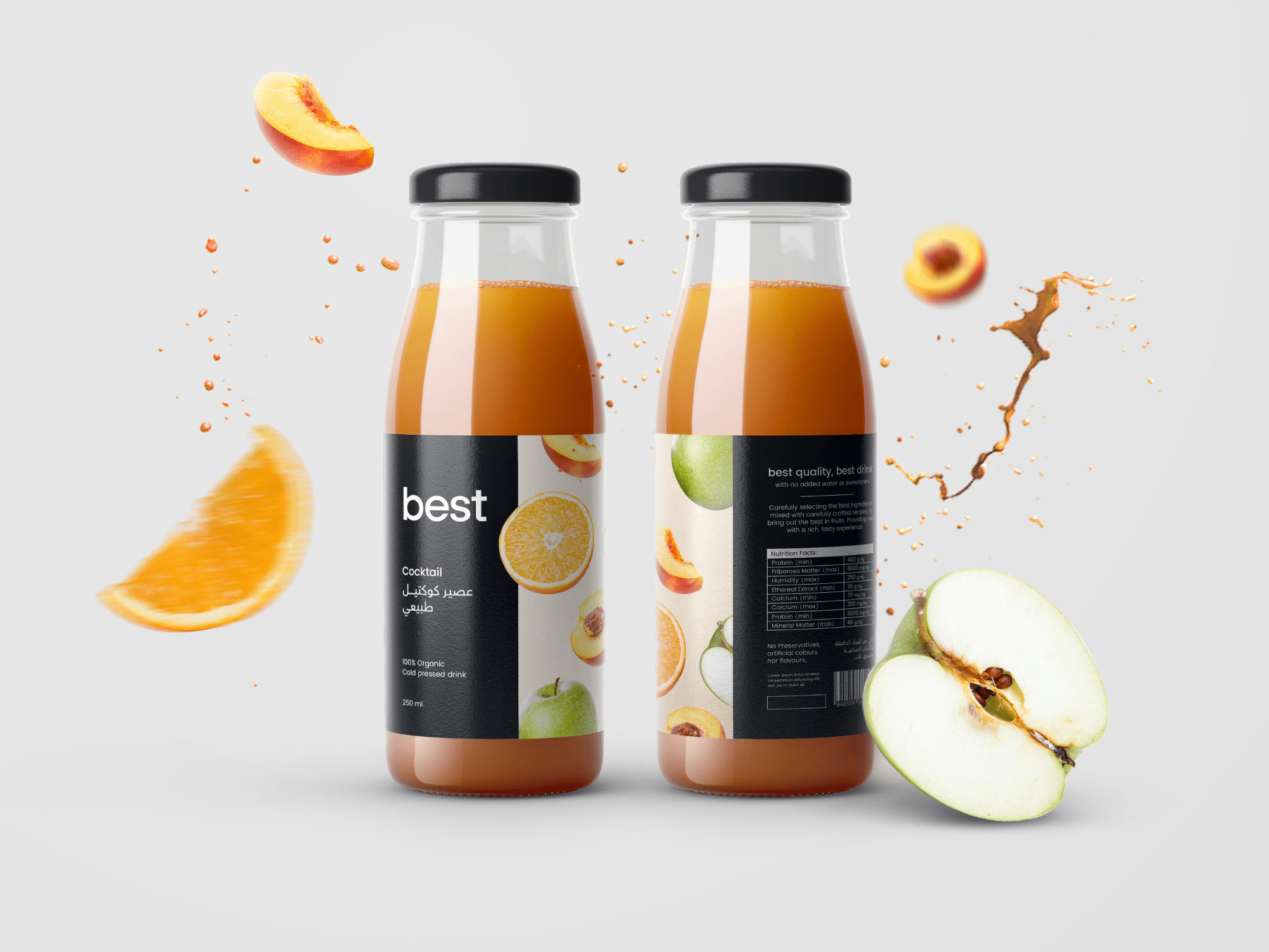 一款國外的飲料,水果,果汁產(chǎn)品包裝設(shè)計,大家也都知道,從農(nóng)場出來的水果屬于初級農(nóng)產(chǎn)品,可以作為鮮果銷售,還可以把賣相不那么好的水果做成果汁,飲料的預(yù)包裝產(chǎn)品銷售,這樣可以大大提高產(chǎn)品的附加值,下面我們一起來欣賞一下這套果汁品牌設(shè)計,農(nóng)產(chǎn)品包裝設(shè)計吧。在包裝設(shè)計上使用新鮮水果,因?yàn)樗w現(xiàn)了優(yōu)質(zhì)的原材料,給人更安全更放心,在顏色上選用黑色,黑色通常與品質(zhì),優(yōu)雅相關(guān),在口味上用石榴、芒果和雞尾酒相結(jié)合的設(shè)計,給人更有品位。